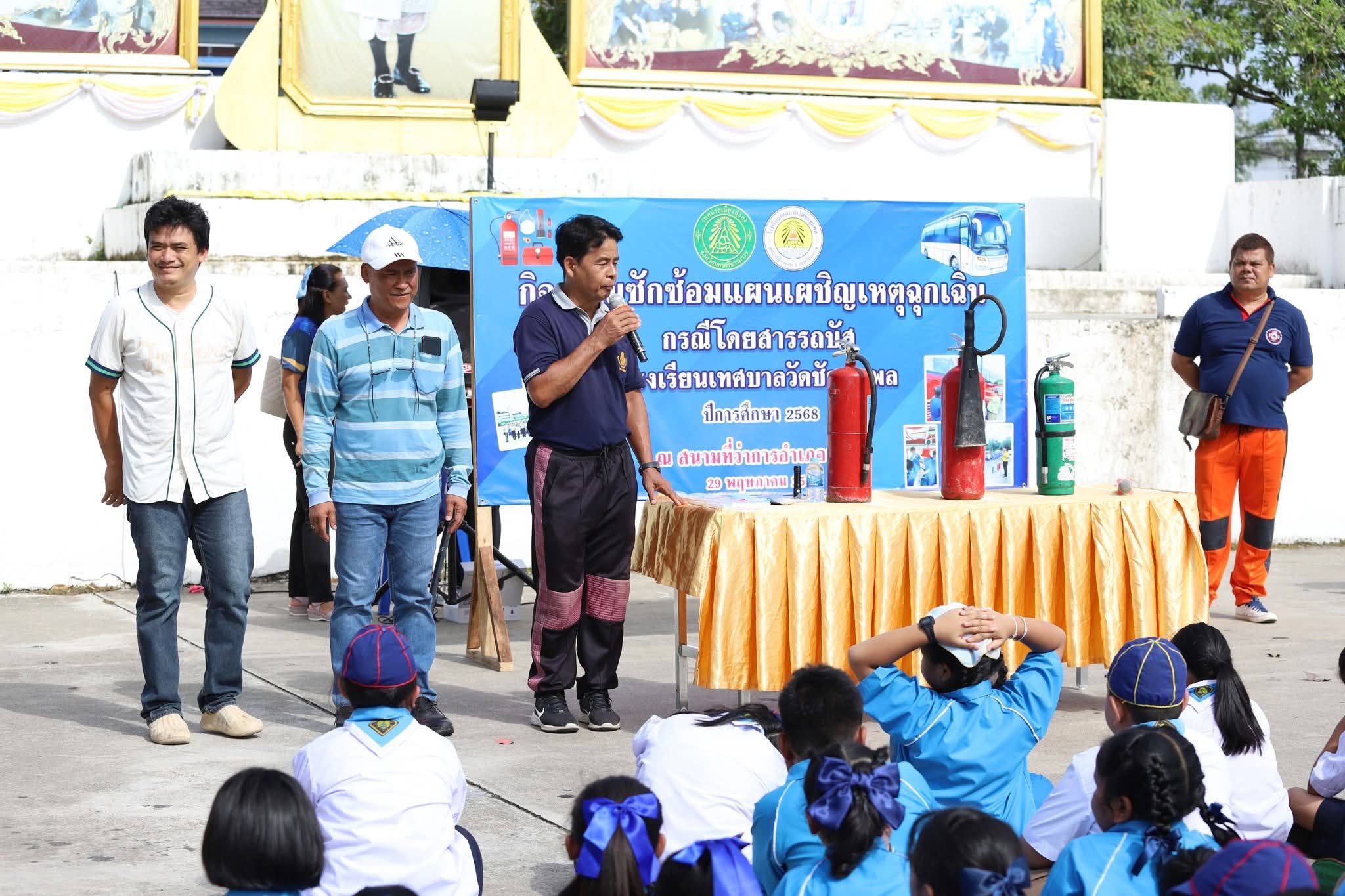 วันพฤหัสบดีที่ 29 พฤษภาคม 2568 โรงเรียนเทศบาลวัดชัยชุมพลได้กิจกรรมซักซ้อมแผนเผชิญเเหตุฉุกเฉินกรณีโดยสารรถบัส ปีการศึกษา2568 ณ สนามหน้าที่ว่าการอำเภอทุ่งสง โดย รองวัฒนิยา ทองแผ้ว รองผู้อำนวยการสถานศึกษาโรงเรียนเทศบาลวัดชัยชุมพล ในนามตัวแทนของผู้จัดกิจกรรม ขอขอบคุณท่านประธานในพิธีที่ได้กรุณาสละเวลามาร่วมกิจกรรมกับพวกเรา