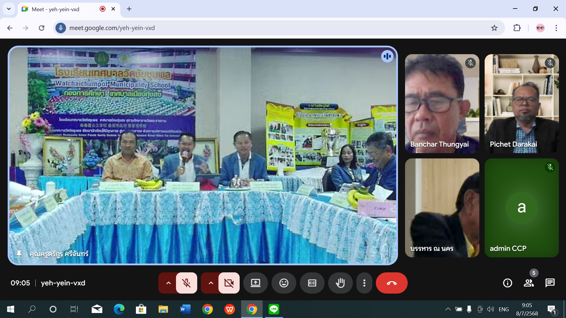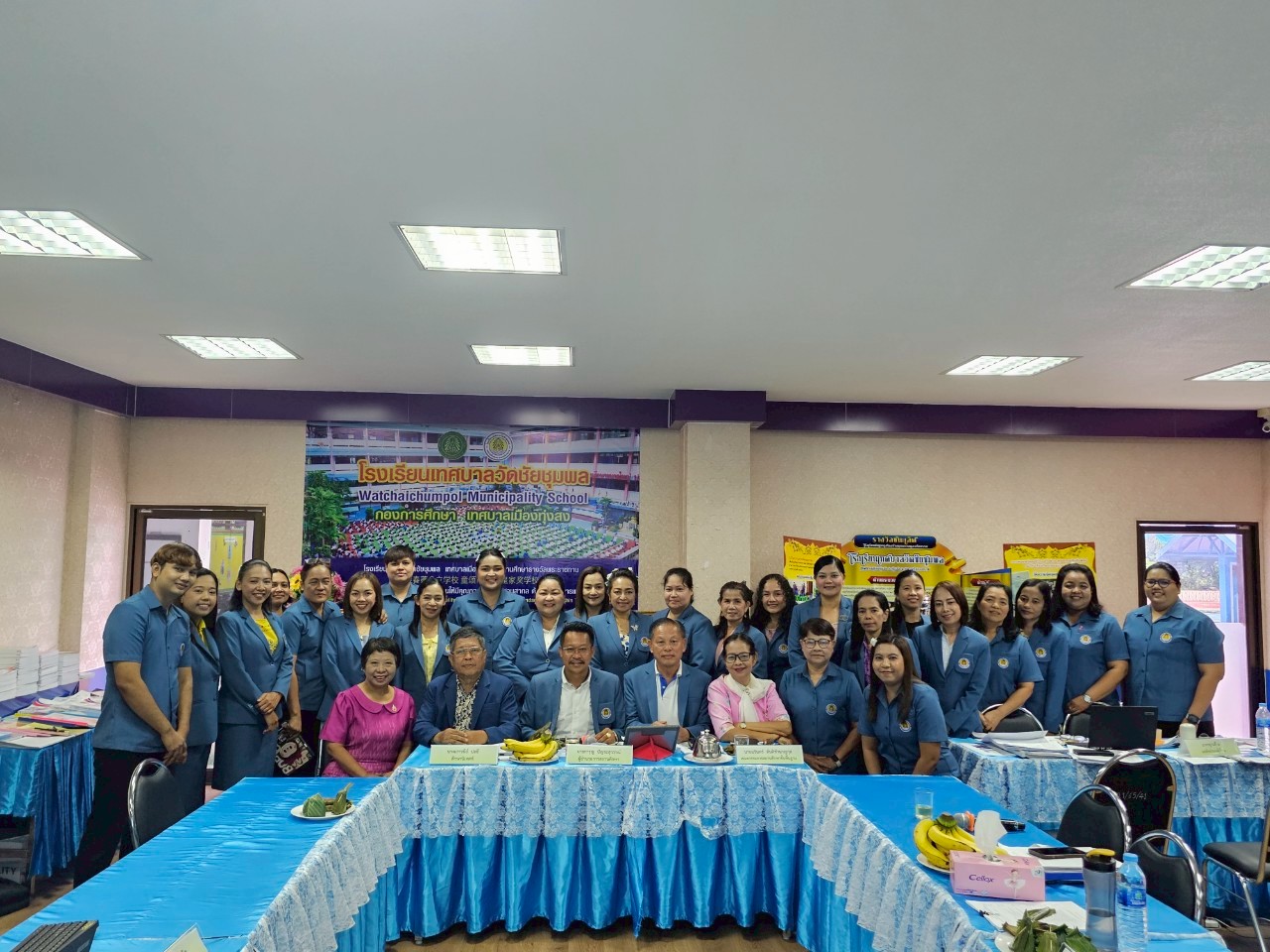 วันอังคารที่ 8 กรกฎาคม 2568 โรงเรียนเทศบาลวัดชัยชุมพล รับการประเมินคุณภาพภายนอก รอบ 5 จาก คณะกรรมการ สมศ. รูปแบบออนไลน์ ในการประเมินได้รับความร่วมมือจาก นายศุภศักดิ์ รักเล่ง ผู้อำนวยการกองการศึกษาเทศบาลเมืองทุ่งสง นางเสาวนีย์ ปอยี ศึกษานิเทศก์ เป็นตัวแทนจากเทศบาล ตัวแทนคณะกรรมการสถานศึกษาขั้นพื้นฐาน นายมรินทร์ ตันติชำนาญกุล ผศ. ประกอบ ศรีจันทร์ ตัวแทนผู้ปกครอง 3 หลักสูตร ได้แก่ นางประไพพิมพ์ ประมุข นางวาสนา มากพงศ์ นางสาวเกวลิน สุขสวัสดิ์ และคณะผู้บริหารสถานศึกษา นำโดย นายการุญ ปัญจะสุวรรณ์ ผู้อำนวยการสถานศึกษา และรองผู้อำนวยการ 5 ท่าน รวมทั้งตัวแทนนักเรียน ในช่วงเช้า เป็นการนำคณะกรรมการชมกิจกรรมหน้าเสาธง เข้าห้องประชุมเพื่อประเมินภาพรวม และแบ่งกลุ่มตอบข้อซักถามตามมาตรฐาน ทั้ง 3 มาตรฐาน ช่วงบ่ายเป็นการนำชมสถานที่ บรรยากาศการจัดการเรียนการสอน ห้องปฏิบัติการ ศูนย์การเรียนรู้ต่างๆ และกลับเข้าห้องประชุมเพื่อสรุปการประเมิน ทั้งหมดนี้เป็นโอกาสในการที่โรงเรียนได้นำเสนอผลการจัดการศึกษาและนำข้อเสนอแนะจากคณะกรรมการไปปรับปรุงให้การจัดการศึกษามีประสิทธิภาพต่อไป