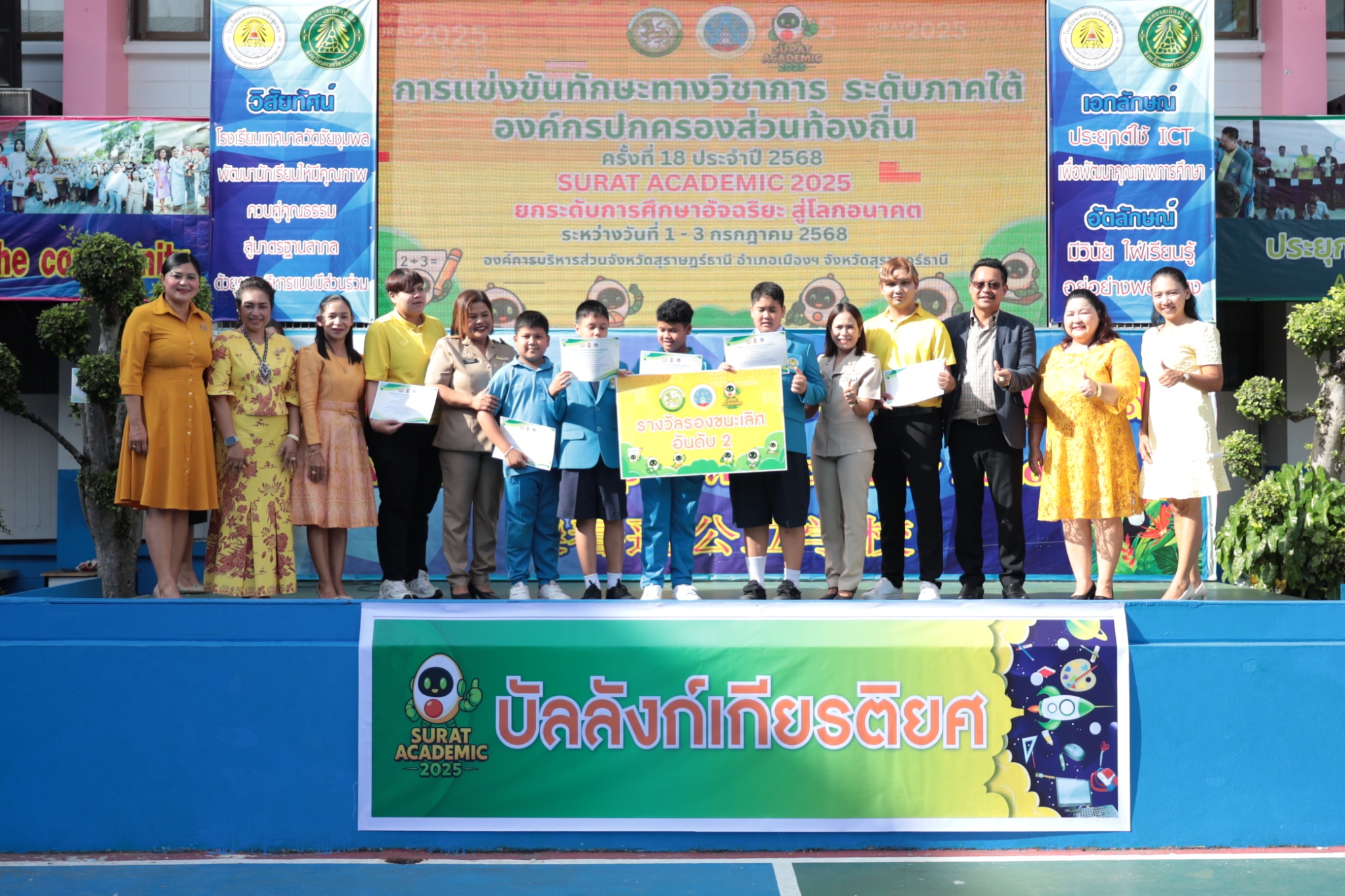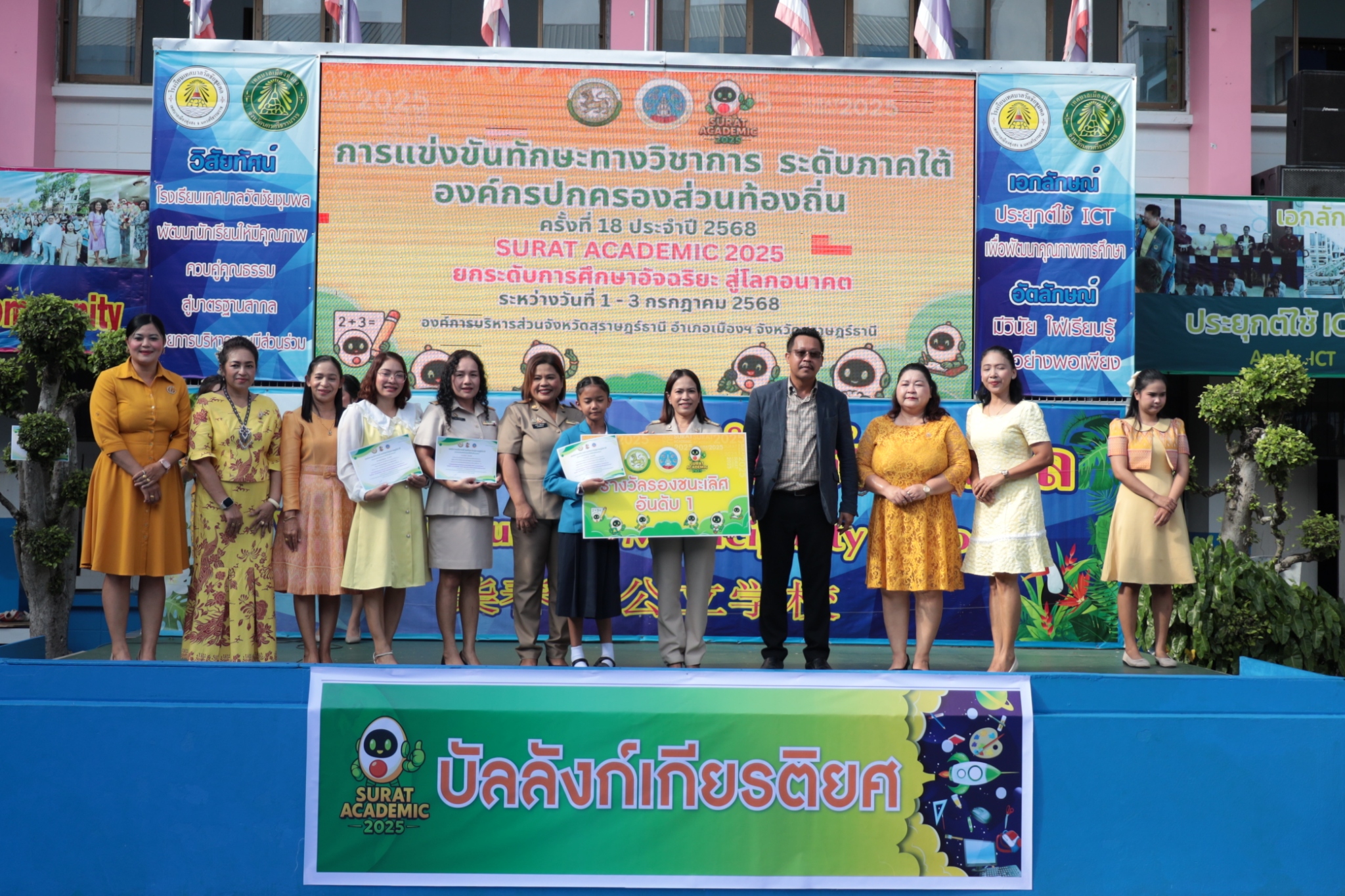 วันจันทร์ ที่ 14 กรกฎาคม 2568 โรงเรียนเทศบาลวัดชัยชุมพล ได้รับเกียรติจาก นางมาริสา เพ็ชรทอง รองปลัดเทศบาลเมืองทุ่งสง นางสาวภัทรานิษฐ์ กุมพันธ์ หัวหน้าฝ่ายบริหารการศึกษา และนายมรินทร์ ตันติชำนาญกุล ประธานคณะกรรมการสถานศึกษาขั้นพื้นฐาน และคณะผู้บริหารสถานศึกษา นำโดย นายการุญ ปัญจะสุวรรณ์ ร่วมเป็นกำลังใจมอบเกียรติบัตรแก่ตัวแทนนักเรียนและคณะครูผู้ฝึกซ้อมที่ได้เข้าแข่งขันทักษะทางวิชาการ ระดับภาคใต้ องค์กรปกครองส่วนท้องถิ่น ครั้งที่ 18 ประจำปี 2568 “ยกระดับการศึกษาอัจฉริยะ สู่โลกกว้าง” ระหว่างวันที่ 1-3 กรกฎาคม 2568 องค์การบริหารส่วนจังหวัดสุราษฎร์ธานี อำเภอเมือง จังหวัดสุราษฎร์ธานี ที่ผ่านมา กับ 28 รายการแข่งขัน สรุปผลการแข่งขัน ชัยชุมพลได้รับ 22 เหรียญทอง 6 เหรียญเงิน 7 รายการไปต่อระดับประเทศ