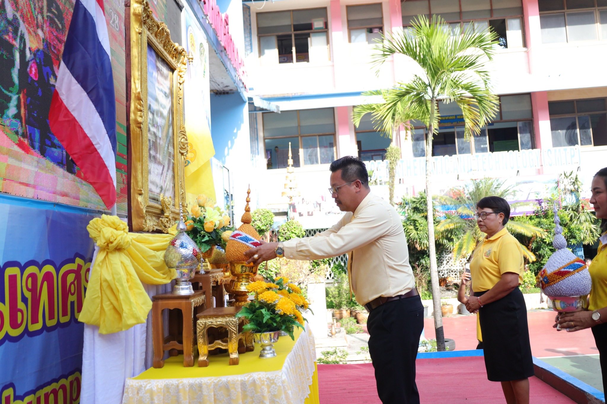 วันศุกร์ที่ 25 กรกฎาคม 2568 นายการุญ ปัญจะสุวรรณ์ ผู้อำนวยการสถานศึกษาโรงเรียนเทศบาลวัดชัยชุมพล นำคณะผู้บริหาร คณะครู นักเรียนและบุคลากรทุกคน ถวายพระพรชัยมงคล พระบาทสมเด็จพระปรเมนทรรามาธิบดีศรีสินทรมหาวชิราลงกรณ์มหิศรภูมิพลราชวรางกูร กิติสิริสมบูรณอดุลยเดชสยามินทราธิเบศรราชวโรดม บรมนาถบพิตร พระวชิรเกล้าเจ้าอยู่หัว