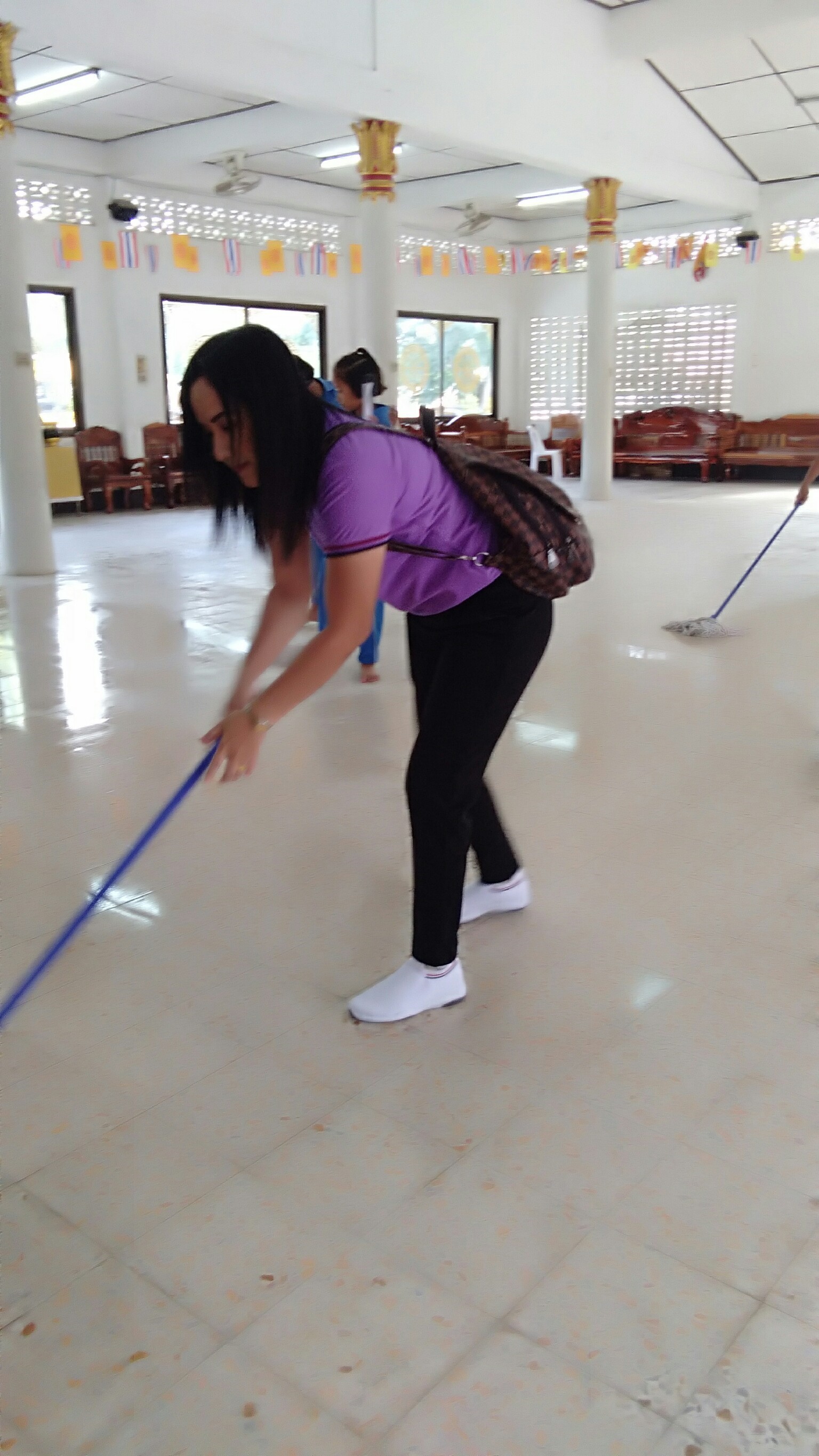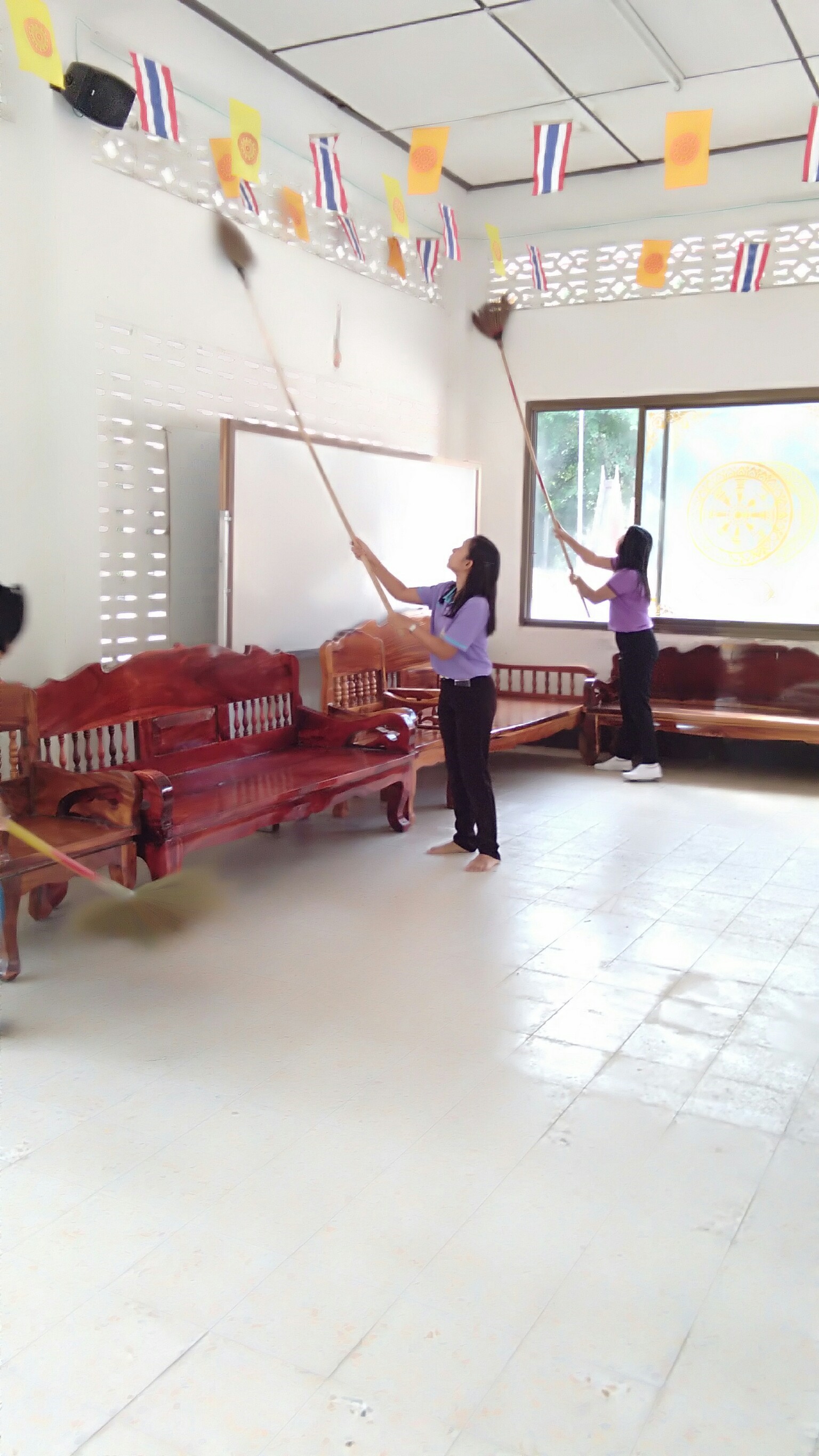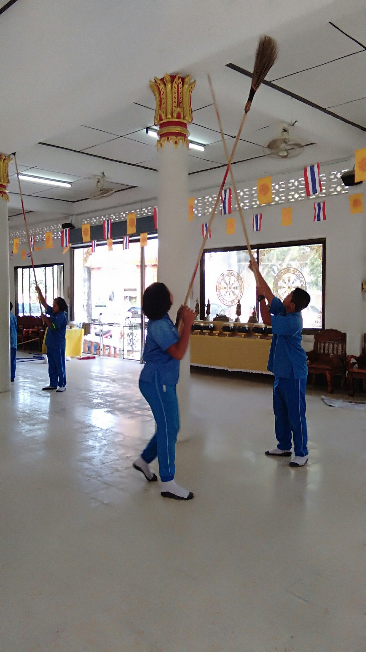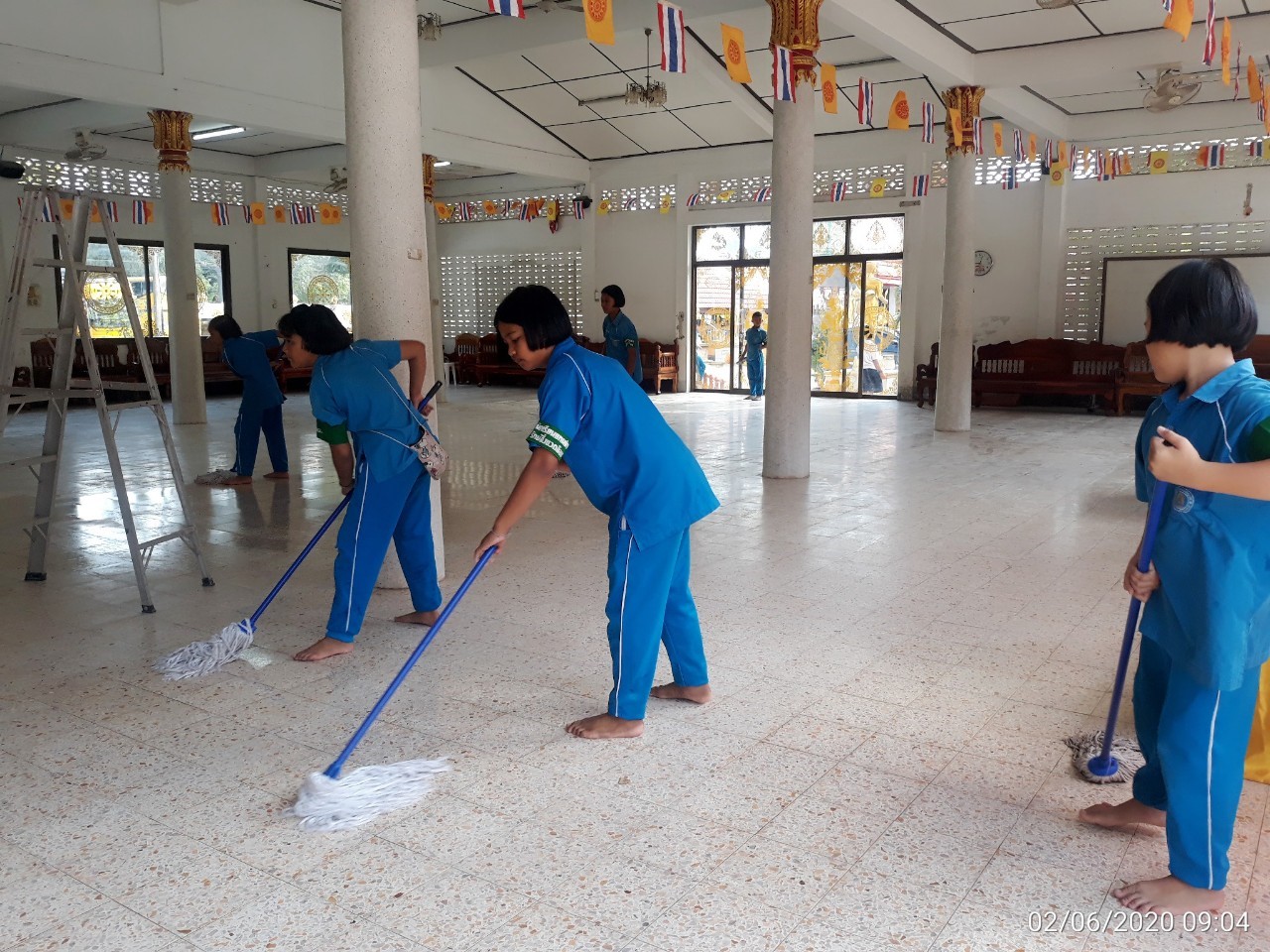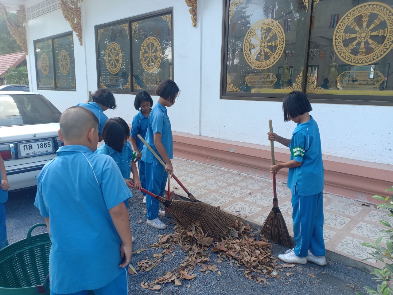 นักเรียนแกนนำรักษ์สิ่งแวดล้อมช่วยกันพัฒนาวัดชัยชุมพล