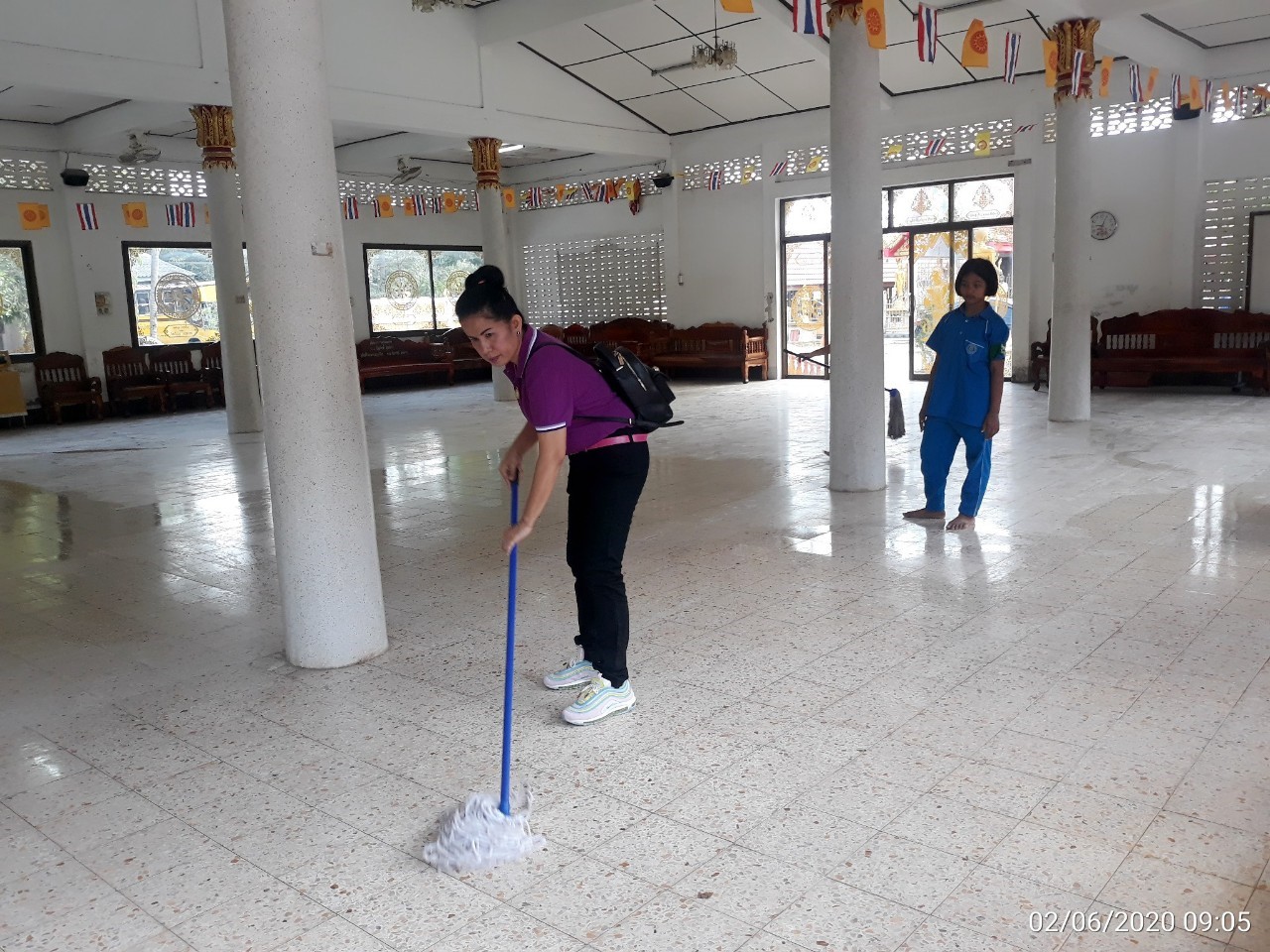 วันที่ 6 กุมภาพันธ์ 2563 นางพิมพา พัฒน์ศรีเรือง รองผู้อำนวยการสถานศึกษา พร้อมด้วยคณะครู นักเรียนแกนนำรักษ์สิ่งแวดล้อมช่วยกันพัฒนาวัดชัยชุมพล
