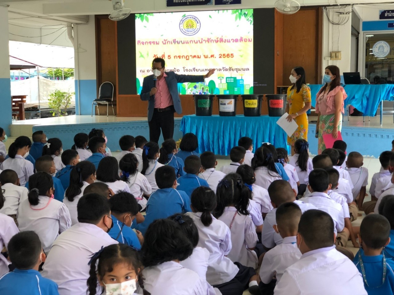 5 กรกฎาคม 2565 โรงเรียนเทศบาลวัดชัยชุมพล นำโดยผู้บริหาร และคณะครูฝ่ายสิ่งแวดล้อม จัดอบรมให้ความรู้เกี่ยวกับการคัดแยกขยะ ให้แก่นักเรียนแกนนำสิ่งแวดล้อม ณ ห้องประชุมโคกหม้อ