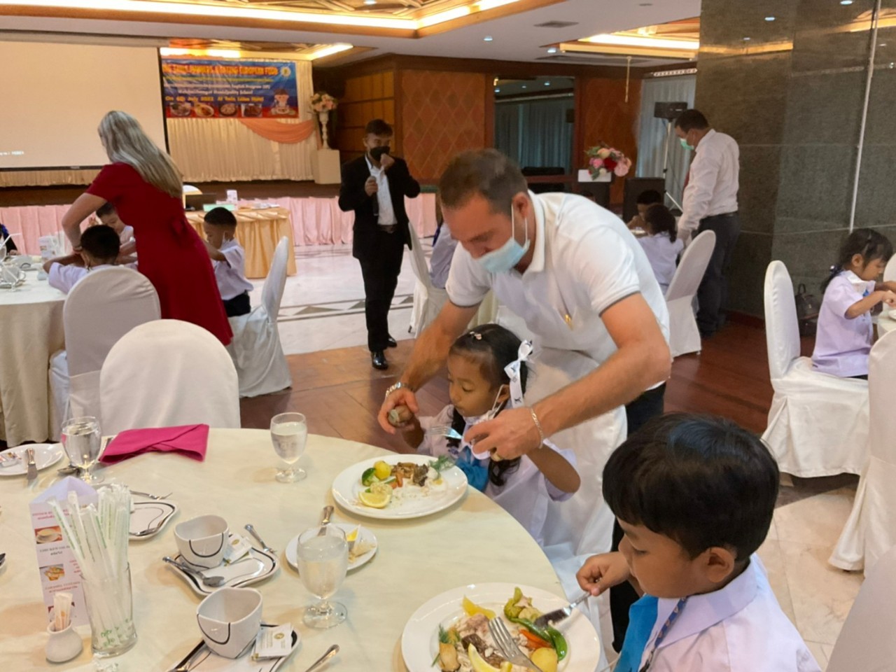 ุ6 กรกฏาคม 2565 โครงการห้องเรียนพิเศษหลักสูตรสองภาษา English Program (EP) จัดกิจกรรม Learning table manners & Eating European food สำหรับนักเรียนชั้นประถมศึกษาปีที่ 1 ณ โรงแรมทวินโลตัส อำเภอเมือง จังหวัดนครศรีธรรมราช
