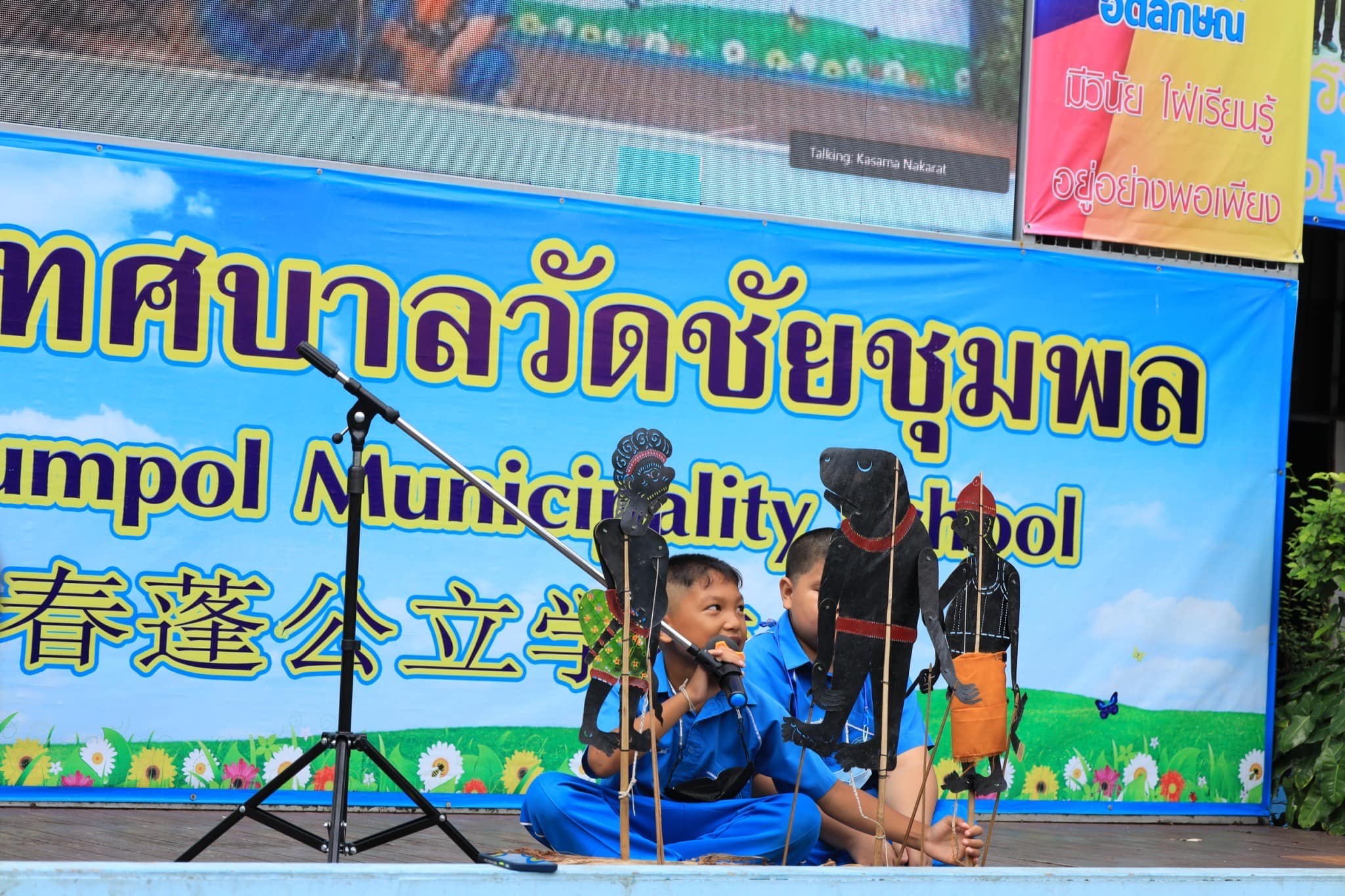 วันที่ 26 ตุลาคม 2565 กิจกรรมส่งเสริมความสามารถนักเรียน "เพชรเม็ดงาม ชัยชุมพล" น้องบอส เด็กชายรพี เดชารัตน์ (หนังไข่เหลี้ยม) นักเรียนชั้น ป.4/3 นายหนังตัวน้อย พร้อมด้วยลูกคู่ น้องตูนย์ เด็กชายภูวิชญ์ วัฒนกุลกิจ นักเรียนชั้น ป.4/ 4 สร้างความฮือฮา กับความเก่ง ตลก มากด้วยความสามารถทางศิลปะท้องถิ่นประจำภาคใต้ เชิญชวนผู้ฟัง ผู้ชม ร่วมกันทำตามนโยบายโรงเรียนปลอดขยะ กับการบริหารงานด้วย "ชัยชุมพลโมเดล" โดยมี และนายการุญ ปัญจะสุวรรณ์ ผู้อำนวยการสถานศึกษา เป็นกำลังใจ ผ่านระบบออนไลน์จากเชียงใหม่ และมีนายมรินทร์ ตันติชำนาญกุล ประธานคณะกรรมการสถานศึกษาขั้นพื้นฐาน ร่วมเป็นกำลังใจและมอบรางวัลแก่นักเรียนคนเก่ง และกล่าวเป็นแรงเสริมให้นักเรียนทุกคนภูมิใจในศักยภาพของตนเอง และร่วมกันดูแลสิ่งแวดล้อมของชัยชุมพล ให้มีสภาพสะอาด น่าอยู่ เป็นเหมือนบ้านของทุกคน