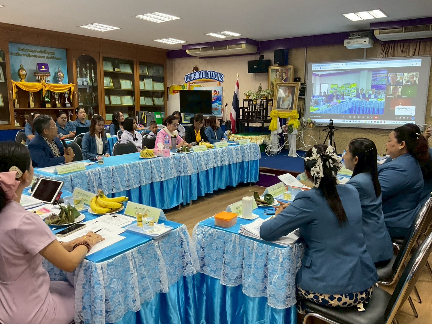 วันอังคารที่ 8 กรกฎาคม 2568 โรงเรียนเทศบาลวัดชัยชุมพล รับการประเมินคุณภาพภายนอก รอบ 5 จาก คณะกรรมการ สมศ. รูปแบบออนไลน์ ในการประเมินได้รับความร่วมมือจาก นายศุภศักดิ์ รักเล่ง ผู้อำนวยการกองการศึกษาเทศบาลเมืองทุ่งสง นางเสาวนีย์ ปอยี ศึกษานิเทศก์ เป็นตัวแทนจากเทศบาล ตัวแทนคณะกรรมการสถานศึกษาขั้นพื้นฐาน นายมรินทร์ ตันติชำนาญกุล ผศ. ประกอบ ศรีจันทร์ ตัวแทนผู้ปกครอง 3 หลักสูตร ได้แก่ นางประไพพิมพ์ ประมุข นางวาสนา มากพงศ์ นางสาวเกวลิน สุขสวัสดิ์ และคณะผู้บริหารสถานศึกษา นำโดย นายการุญ ปัญจะสุวรรณ์ ผู้อำนวยการสถานศึกษา และรองผู้อำนวยการ 5 ท่าน รวมทั้งตัวแทนนักเรียน ในช่วงเช้า เป็นการนำคณะกรรมการชมกิจกรรมหน้าเสาธง เข้าห้องประชุมเพื่อประเมินภาพรวม และแบ่งกลุ่มตอบข้อซักถามตามมาตรฐาน ทั้ง 3 มาตรฐาน ช่วงบ่ายเป็นการนำชมสถานที่ บรรยากาศการจัดการเรียนการสอน ห้องปฏิบัติการ ศูนย์การเรียนรู้ต่างๆ และกลับเข้าห้องประชุมเพื่อสรุปการประเมิน ทั้งหมดนี้เป็นโอกาสในการที่โรงเรียนได้นำเสนอผลการจัดการศึกษาและนำข้อเสนอแนะจากคณะกรรมการไปปรับปรุงให้การจัดการศึกษามีประสิทธิภาพต่อไป