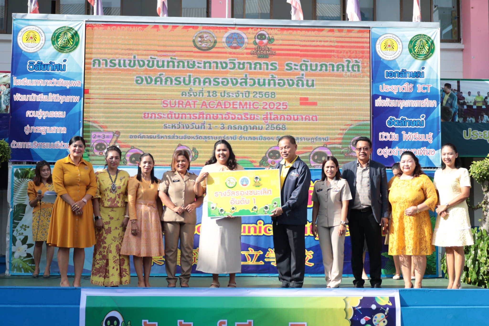 วันจันทร์ ที่ 14 กรกฎาคม 2568 โรงเรียนเทศบาลวัดชัยชุมพล ได้รับเกียรติจาก นางมาริสา เพ็ชรทอง รองปลัดเทศบาลเมืองทุ่งสง นางสาวภัทรานิษฐ์ กุมพันธ์ หัวหน้าฝ่ายบริหารการศึกษา และนายมรินทร์ ตันติชำนาญกุล ประธานคณะกรรมการสถานศึกษาขั้นพื้นฐาน และคณะผู้บริหารสถานศึกษา นำโดย นายการุญ ปัญจะสุวรรณ์ ร่วมเป็นกำลังใจมอบเกียรติบัตรแก่ตัวแทนนักเรียนและคณะครูผู้ฝึกซ้อมที่ได้เข้าแข่งขันทักษะทางวิชาการ ระดับภาคใต้ องค์กรปกครองส่วนท้องถิ่น ครั้งที่ 18 ประจำปี 2568 “ยกระดับการศึกษาอัจฉริยะ สู่โลกกว้าง” ระหว่างวันที่ 1-3 กรกฎาคม 2568 องค์การบริหารส่วนจังหวัดสุราษฎร์ธานี อำเภอเมือง จังหวัดสุราษฎร์ธานี ที่ผ่านมา กับ 28 รายการแข่งขัน สรุปผลการแข่งขัน ชัยชุมพลได้รับ 22 เหรียญทอง 6 เหรียญเงิน 7 รายการไปต่อระดับประเทศ