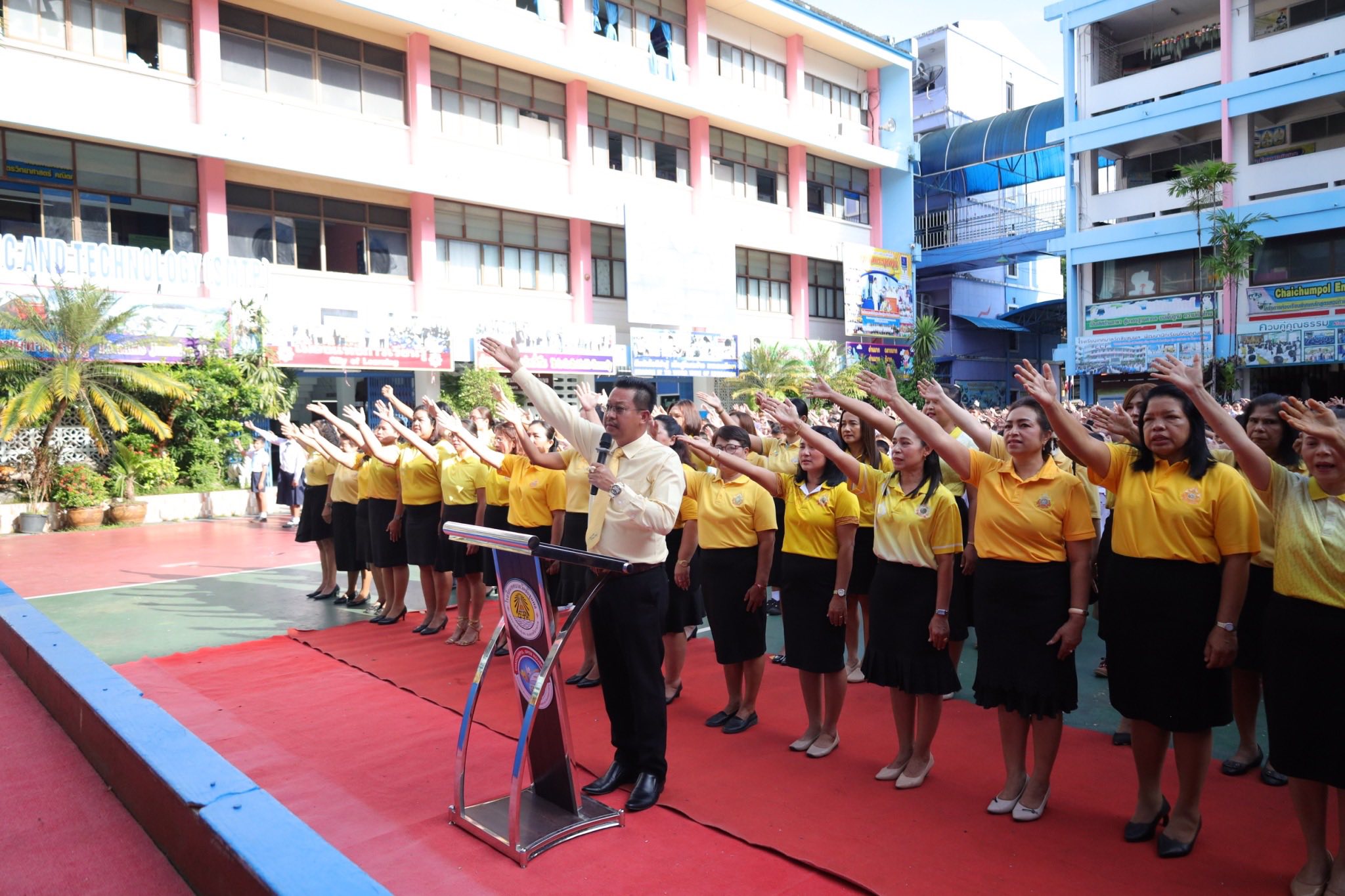 วันศุกร์ที่ 25 กรกฎาคม 2568 นายการุญ ปัญจะสุวรรณ์ ผู้อำนวยการสถานศึกษาโรงเรียนเทศบาลวัดชัยชุมพล นำคณะผู้บริหาร คณะครู นักเรียนและบุคลากรทุกคน ถวายพระพรชัยมงคล พระบาทสมเด็จพระปรเมนทรรามาธิบดีศรีสินทรมหาวชิราลงกรณ์มหิศรภูมิพลราชวรางกูร กิติสิริสมบูรณอดุลยเดชสยามินทราธิเบศรราชวโรดม บรมนาถบพิตร พระวชิรเกล้าเจ้าอยู่หัว