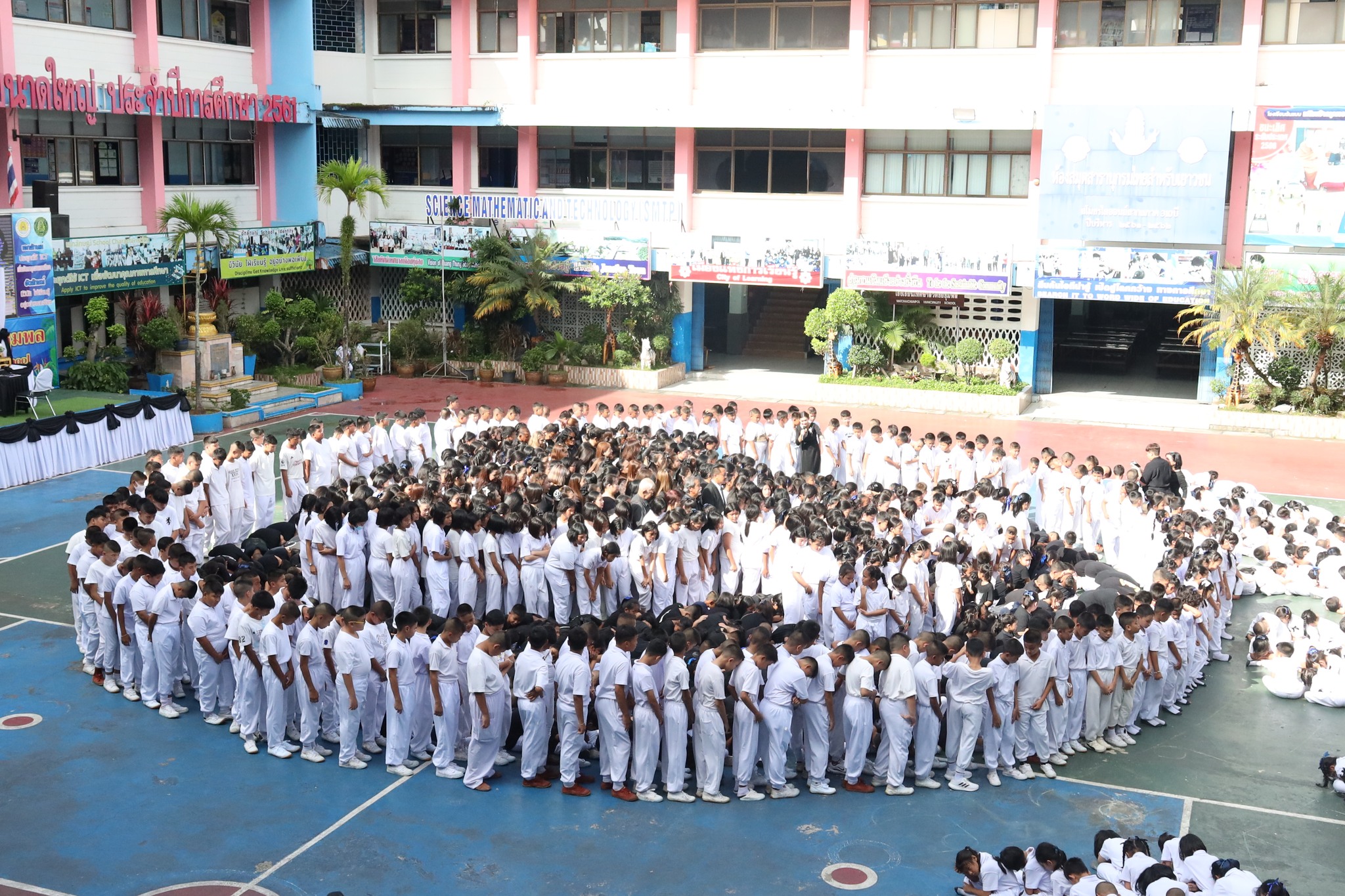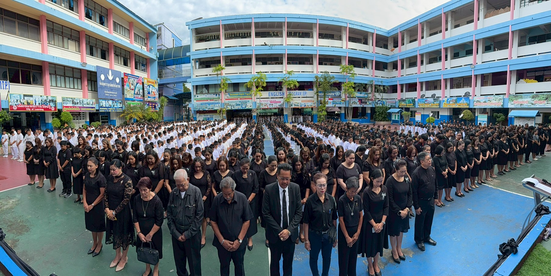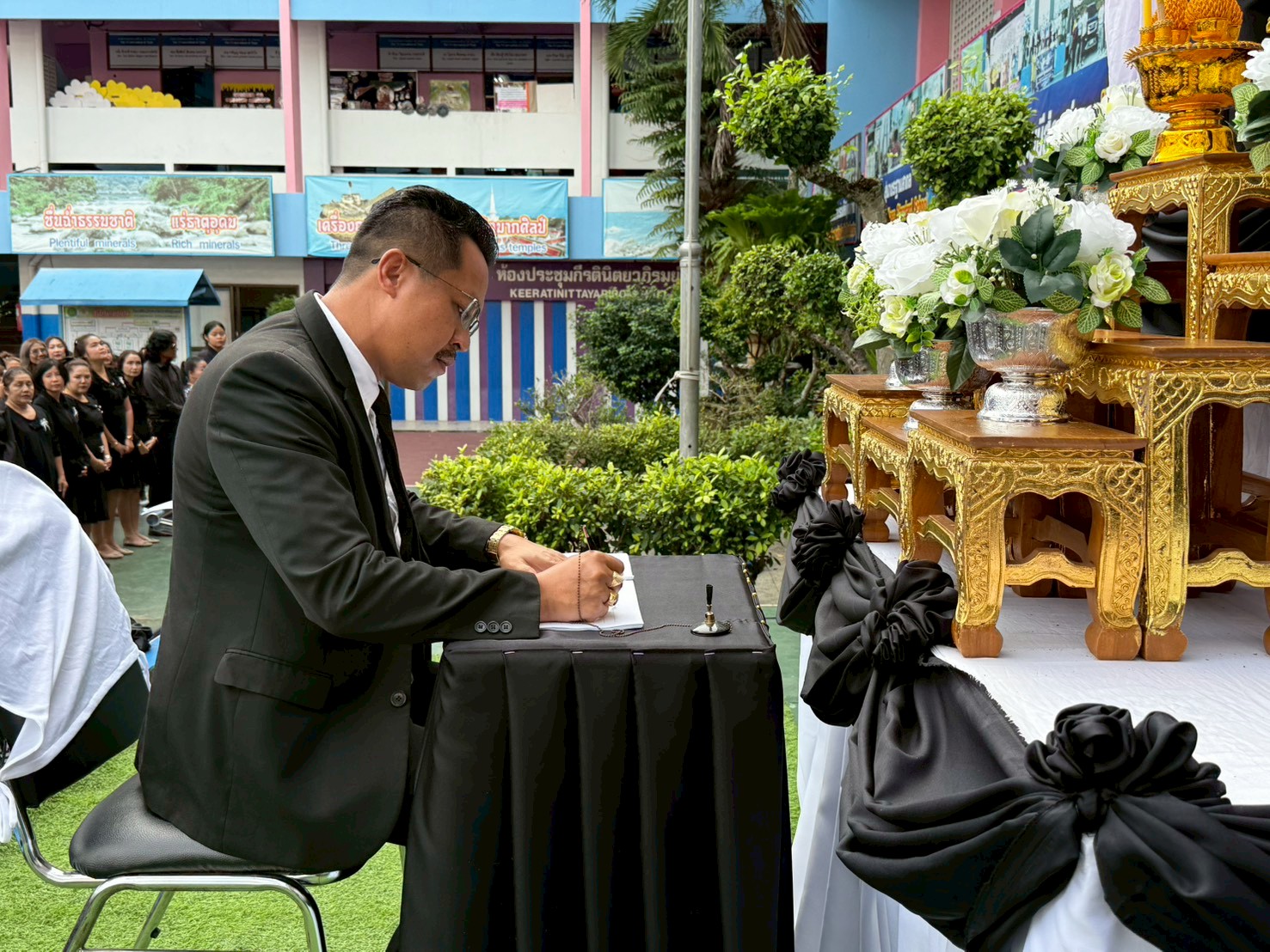 วันพฤหัสบดี ที่6 พฤศจิกายน 2568 นายการุญ ปัญจะสุวรรณ์ ผุ้อำนวยการสถานศึกษาโรงเรียนเทศบาลวัดชัยชุมพล นำคณะผู้บริหาร ตัวแทนคณะกรรมการสถานศึกษาขั้นพื้นฐาน คณะกรรมการเครือข่ายผู้ปกครอง ผู้นำชุมชน ศิษย์เก่า คณะครู บุคลากรและนักเรียนโรงเรียนเทศบาลวัดชัยชุมพล ร่วมพิธีถวายความอาลัย สมเด็จพระนางเจ้าสิริกิตติ์ พระบรมราชินีนาถ พระบรมราชชนนี พันปีหลวง ด้วยการลงนามถวายความอาลัย ยืนสงบนิ่งรำลึกในพระมหากรุณาธิคุณอย่างหาที่สุดมิได้ เป็นเวลา 93 วินาที และน้อมส่งเสด็จสู่สวรรคาลัยด้วยการแปรอัษร “ท.1 วัดชัยชุมพล” เหล่าข้าพระพุทธเจ้า ร่วมส่งดวงใจแห่งความจงรักภักดี พระบารมีของพระองค์จะสถิตในใจเหล่าพสกนิกรชัยชุมพลตราบนิจนิรันดร์